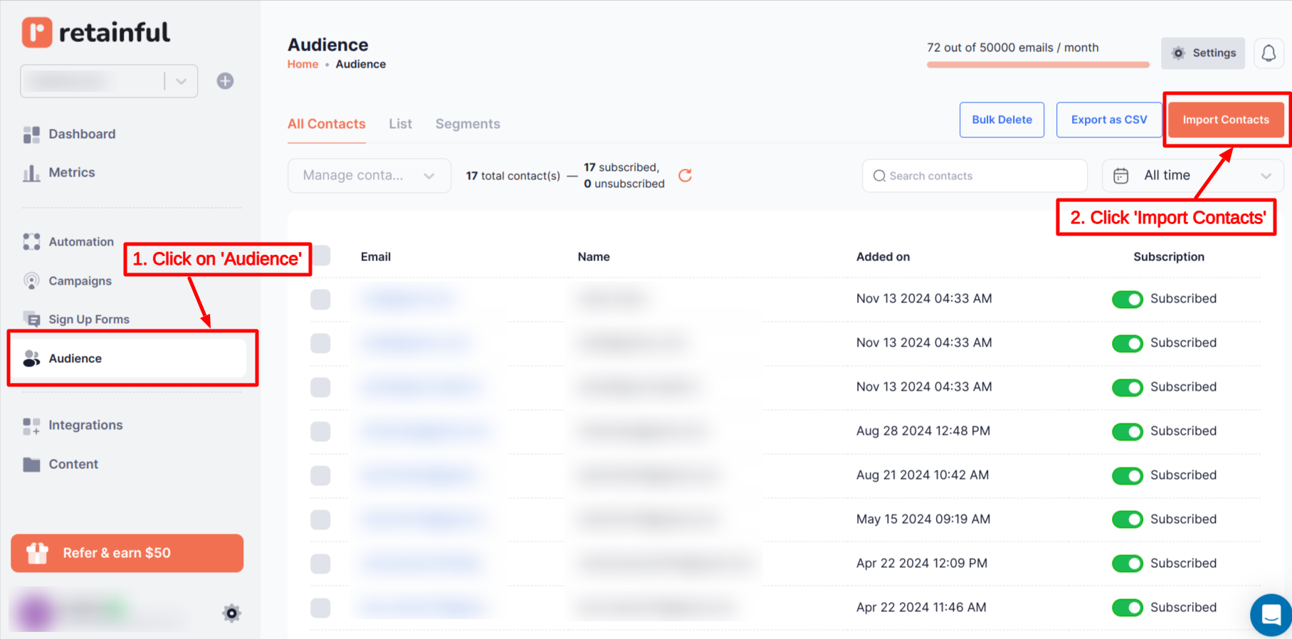 If you are already using Retainful or just getting started, you would want to import your existing contacts (customers) from your WooCommerce store and create lists/segments with them for sending email campaigns and analytics.